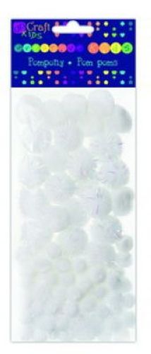 Pompony akrylowe DPCRAFT mix białe 85szt.
