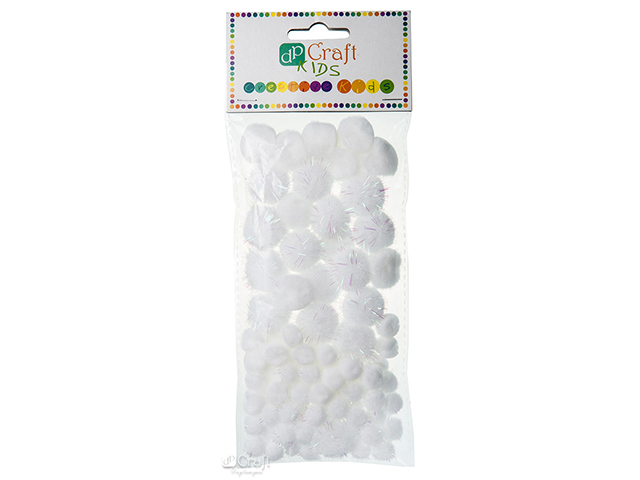 Artykuły Ozdobne i Kreatywne » Pompony » Pompony akrylowe DPCRAFT mix białe 85szt.