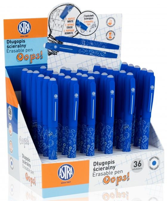 Pisanie » Długopisy » Długopisy Wymazywalne » Długopis ścieralny ASTRA OOPS! - niebieski, display SUPER-HURT