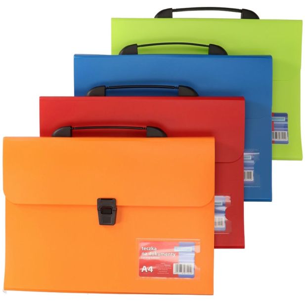Teczka na dokumenty SCHEMAT to praktyczne rozwiązanie do przechowywania i organizowania papierów. Wykonana z wytrzymałego polipropylenu, zapewnia trwałość i odporność na codzienne użytkowanie. Posiada solidne zamknięcie oraz wygodną rączkę, które gwarantują bezpieczne przenoszenie dokumentów. Wewnątrz mieści się 12 przegródek z mocnej folii, co ułatwia segregację i szybkie odnajdywanie potrzebnych materiałów. Dostępna w czterech żywych kolorach.