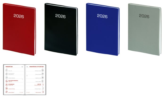 Cechy produktu: ✔ Układ: dwa tygodnie na rozkładówce – przejrzyste planowanie. ✔ Kalendarium PL – zawiera święta, podwójne imieniny, wschody i zachody Słońca. ✔ Format bloku: 65x100 mm – kieszonkowy i wygodny do noszenia. ✔ Ilość stron: 80 – wystarczająca ilość miejsca na notatki. ✔ Papier biały 70g/m², druk szaro–bordowy. ✔ Okładka miękka PCV – trwała i elegancka, w jednolitych kolorach (mix). ✔ Dodatkowo: kalendarium na lata 2026 i 2027. ✔ Pakowanie po 12szt w jednym kolorze