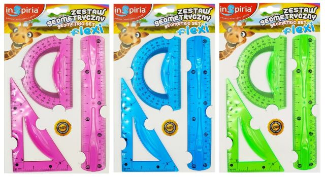 Artykuły Kreślarskie » Zestawy Kreślarskie » Zestawy Kreślarskie 20 cm » INSPIRIA - KOMPLET GEOMETRYCZNY FLEXI 3 EL. 20CM 7053 [opakowanie=24szt]