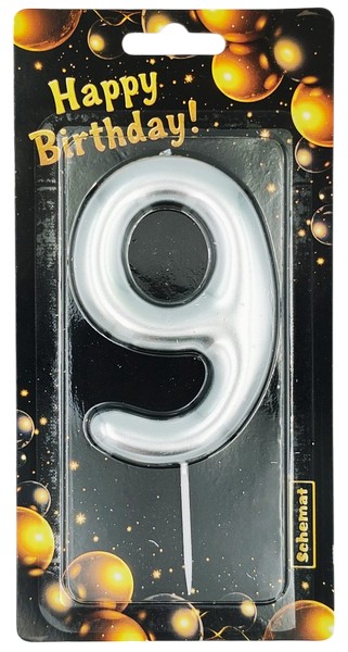 ŚWIECZKA CYFRA SREBRNA - 9 6704 [opakowanie=12szt]