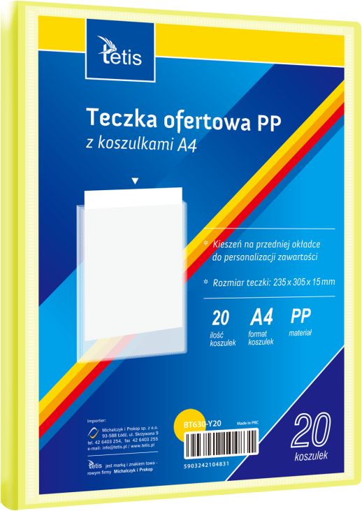 Artykuły Biurowe » Teczki Ofertowe » Teczki Ofertowe A4/20 » TECZKA OFERT. PP Z 20 KOSZUL. A4. ŻÓŁTA