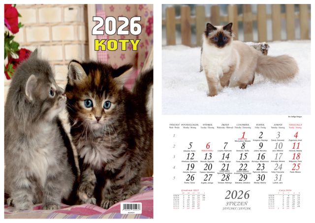 Kalendarz wieloplanszowy BESKIDY W03 13 zdjęciowy Koty 2026