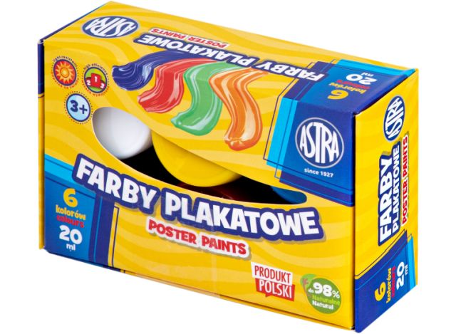 Farby plakatowe ASTRA 6 kolorów 20ml Standard Box HURT