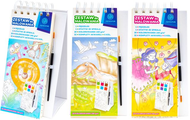 Książeczki I Kolorowanki » Kolorowanki Dla Dzieci » Zestaw do malowania z farbami ASTRAFUN 20 kol + pędzel, mix wzorów: zwierzątka, księżniczki, kosmos, dinozaury
