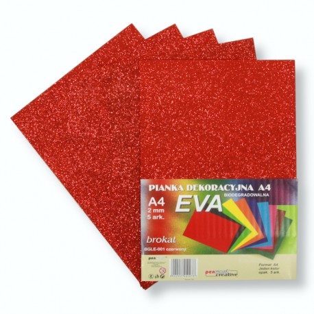 Artykuły Ozdobne i Kreatywne » Filc Pianka Guma » Arkusze z pianki i z gumy » PIANKA EVA BROKAT A4 CZERWONA 1. BGLE-001 BIODEGRADOWALNA a5