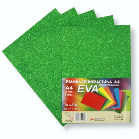 Artykuły Ozdobne i Kreatywne » Filc Pianka Guma » Arkusze z pianki i z gumy » PIANKA EVA BROKAT A4 ZIELONA BGLE-013 BIODEGRADOWALNA a5