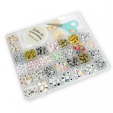 Cechy produktu: ✔ Zestaw: 652 elementy – bogactwo koralików, literek, wzorów i dodatków. ✔ W komplecie: żyłka do bransoletek, nożyczki, drewniane koraliki, przekładki. ✔ Wariant DIY – idealny do tworzenia spersonalizowanej biżuterii. ✔ Rozwija kreatywność, koncentrację i sprawność manualną. ✔ Dla dzieci, młodzieży i dorosłych – uniwersalny zestaw twórczy. ✔ Opakowanie: estetyczny organizer z przegródkami – łatwe przechowywanie i użytkowanie.