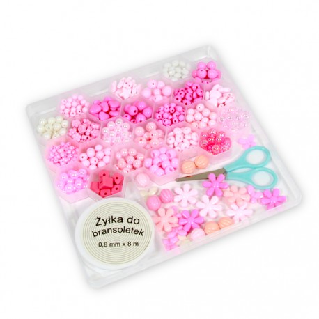Cechy produktu: ✔ Zestaw: 594 elementy – bogaty wybór różowych i pastelowych koralików. ✔ Akcesoria w zestawie: żyłka do bransoletek (0,8 mm x 8 m), nożyczki, przekładki, ozdoby. ✔ Kolorystyka: odcienie różu, bieli i pasteli – idealne dla miłośniczek stylu girl power. ✔ Zastosowanie: DIY biżuteria, prace plastyczne, personalizowane dodatki. ✔ Rozwija zdolności manualne, kreatywność i precyzję. ✔ Praktyczny organizer – wszystko uporządkowane i gotowe do działania!