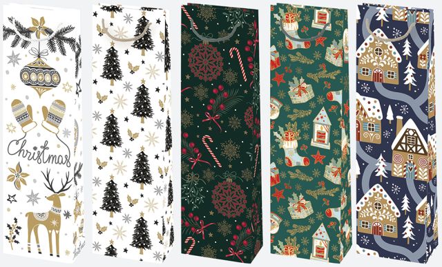 Torebki prezentowe POL-MAK z kolekcji Gwiazdka T12_GW_28 to doskonałe rozwiązanie dla wszystkich, którzy chcą podarować wino lub inny alkohol w stylowy sposób. Każda torba zdobiona jest pięknymi, świątecznymi motywami – reniferami, choinkami, piernikowymi domkami, gałązkami świerkowymi czy cukrowymi laskami. Dzięki solidnemu wykonaniu i papierowi kredowemu o gramaturze 170 g/m², torby są eleganckie, trwałe i wyjątkowo efektowne.