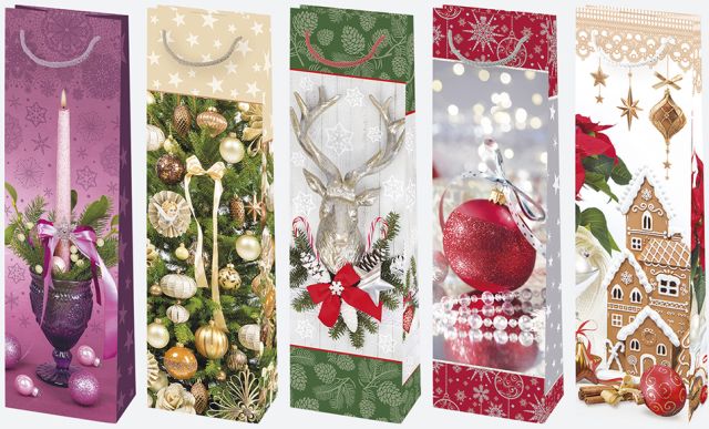 Torebki prezentowe z kolekcji Gwiazdka T12_GW_30 marki POL-MAK to eleganckie opakowania stworzone specjalnie do butelek wina, likierów lub innych trunków. Wyróżniają się wyjątkową grafiką w świątecznym klimacie – bombki, choinki, renifery, świece i piernikowe domki w pięknych, klasycznych barwach. Wykonane z grubego papieru kredowego o gramaturze 170 g/m², gwarantują wysoką trwałość i doskonałą prezencję każdego upominku.