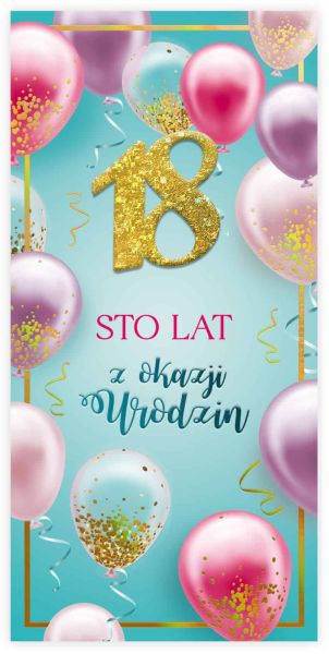 🎈 Kartka urodzinowa KZK DL – 18 urodziny, Sto Lat z Okazji Urodzin!