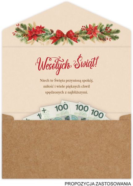Koperta na pieniądze KZK Boże Narodzenie DL nr.3 Świąteczna poinsecja