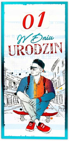 Kartki karnet DL WYMIENNE CYFRY Urodziny młodzieżowe Nr 001