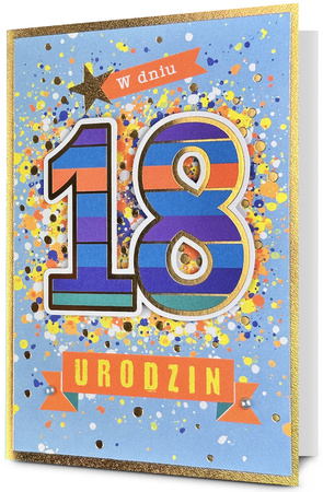 Kartki, Pamiątki, Upominki » Kartki Okolicznościowe » Kartki Urodzinowe "18-stka" » Kartka na osiemnastkę PAN DRAGON HM 200-3446 Niebieskie konfetti
