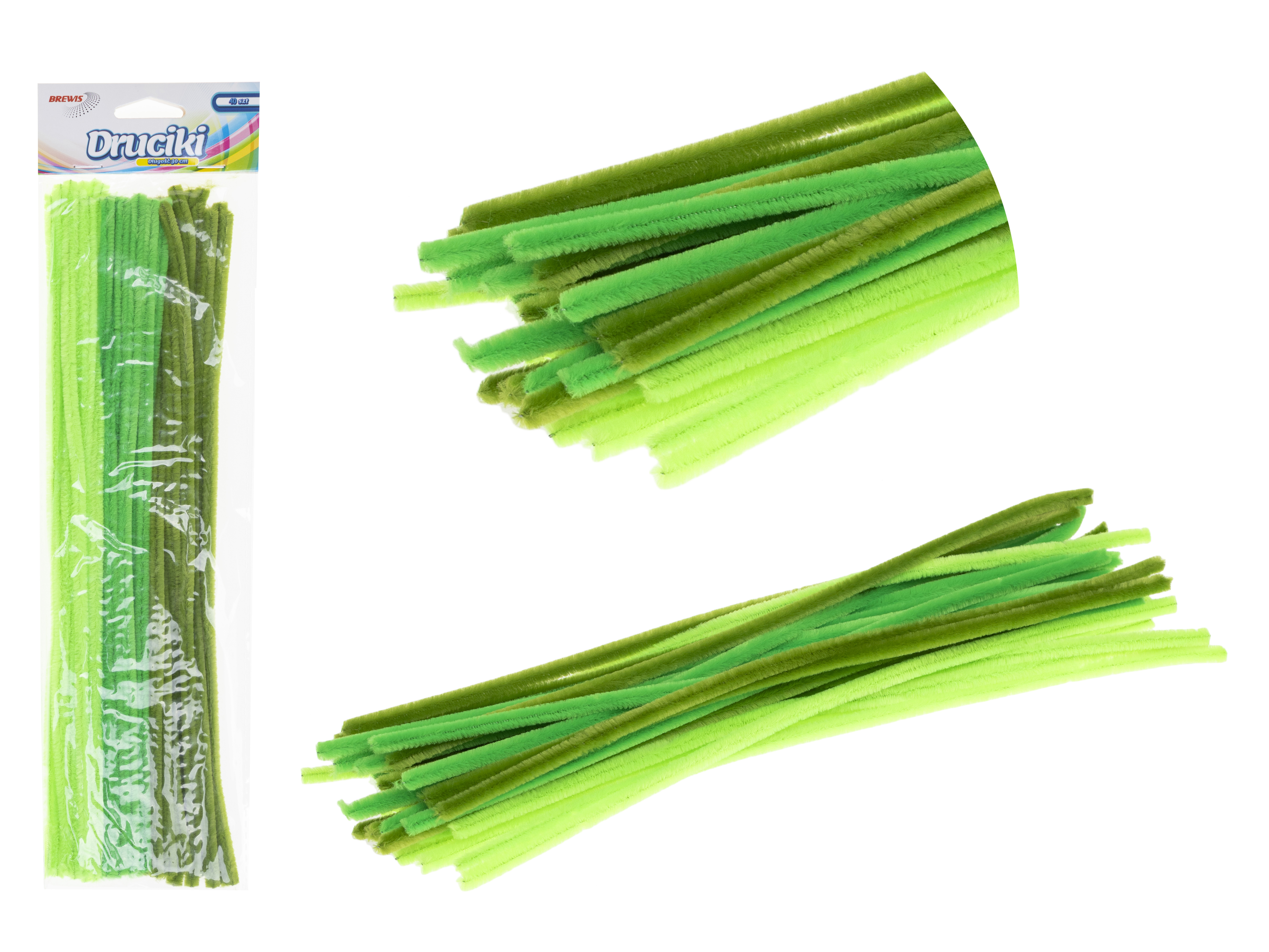Cechy produktu: ✔ Długość drucika: 30 cm ✔ Ilość w opakowaniu: 40szt. ✔ Miękkie, łatwe do formowania, wielokrotnego użytku ✔ Kolor: odcienie zielonego ✔ Idealne do figurek, prac szkolnych, dekoracji i projektów DIY