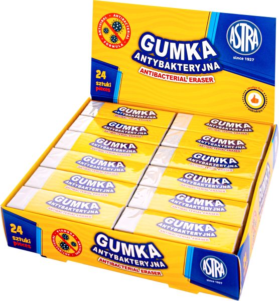 Gumka ASTRA antybakteryjna 60 x 20 x 11 mm• miękka gumka do ścierania ołówka • nie narusza struktury papieru • działanie antybakteryjne |