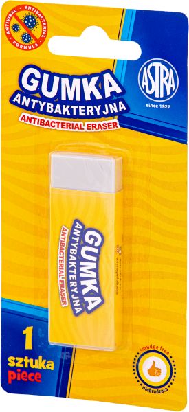 Gumka antybakteryjna ASTRA - 1 szt. blister• miękka gumka do ścierania ołówka • nie narusza struktury papieru • działanie antybakteryjne |