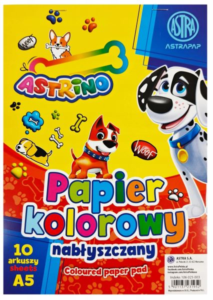 Zeszyt papierów kolorowych nabłyszczanych ASTRA ASTRINO A5, 10k [opakowanie=10szt] |