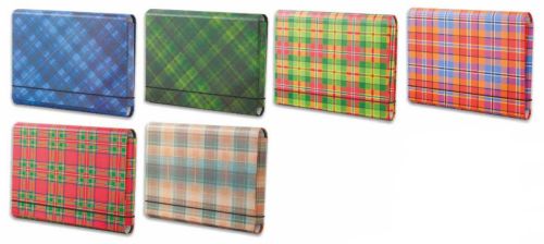 Teczka łamana A4 na gumkę PENMATE krata - wzór A0438Teczka wykonana z tektury 1,7 mm, nitowane boki z okleinowanymi krawędziami. Okleina uszlachetniona folią polipropylenową. Grubość grzbietu do 4 cm. Wymiar w cm: 32 x 24,5. |