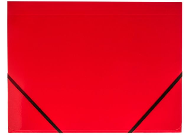 Teczka z tektury 1,7 mm. Wymiary w cm: 32 x 23,5 x 4,5. Boki z okleinowanymi krawędziami, zapinana na płaską gumkę 7 mm. Uszlachetniona błyszczącą folią polipropylenową.