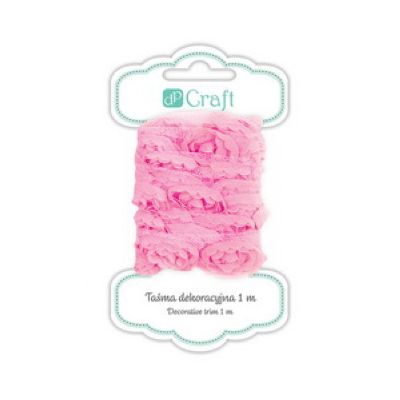 Taśma dekoracyjna DPCRAFT 1m - Sugar pinkDekoracyjna taśma w formie szyfonowych różyczek na tiulu.Doskonała do zdobienia projektów scrapbookingowych, kartek okolicznościowych, własnoręcznie tworzonej biżuterii, elementów garderoby itp.