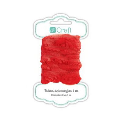 Taśma dekoracyjna DPCRAFT 1m - ScarletDekoracyjna taśma w formie szyfonowych różyczek na tiulu.Doskonała do zdobienia projektów scrapbookingowych, kartek okolicznościowych, własnoręcznie tworzonej biżuterii, elementów garderoby itp.