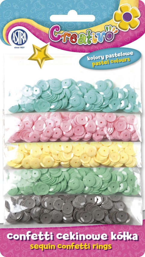 Confetti cekinowe kółka ASTRA na blistrze - mix 5 kolorów paConfetti cekinowe - pastelowe kolory - kółka 1000 szt |