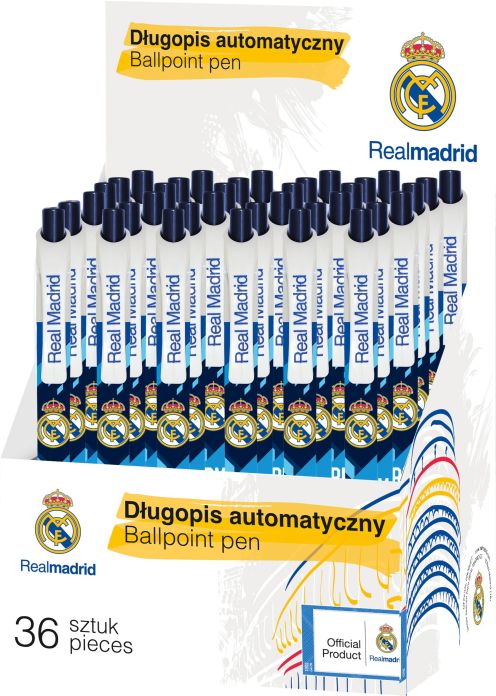 Długopis automatyczny 0,7 mm RM-154 REAL MADRID - 36 szt. displayDługopis automatyczny dla fanów drużyny Real Madryt. Zapisuj wyniki meczów, pisz listy do swojego ukochanego klubu lub zabierz go ze sobą do szkoły.