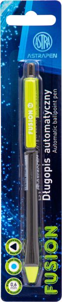 Długopis automatyczny ASTRAPEN trójkątny Fusion, blister 1szt.• Długopis automatyczny • ergonomiczny uchwyt • grubość końcówki 0.6 mm • wyjątkowa lekkość pisania • niebieski kolor tuszu |