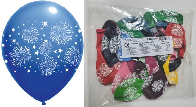 BALONY 10" Z NADRUKIEM WZÓR 2 - a25 mix kolorów "Fajerwerki"Balony 12" z nadrukiem – fajerwerki, mix kolorów (25szt.)