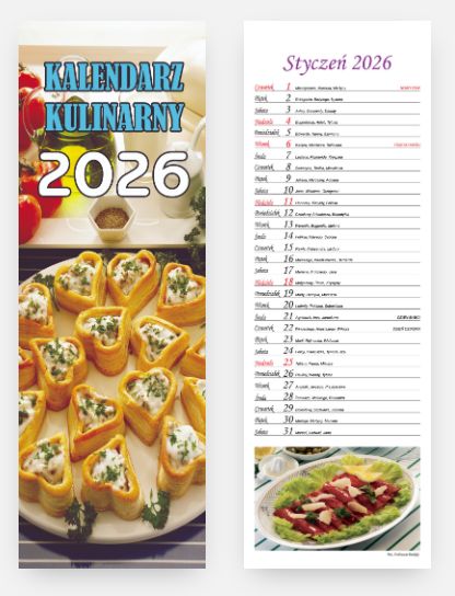 Kalendarz paskowy BESKIDY KP1 KULINARNY 2026Kalendarz paskowy w formacie 14 x 42 cm. Jest to najtańsza wersja kalendarza wieloplanszowego. Dzięki łączeniu kart spiralą, mamy ułatwione obracanie i przechowywanie stron z poprzednich miesięcy. Kalendarium w układzie miesięcznym z imionami i głównymi... |