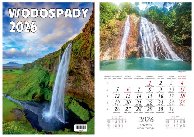 Kalendarz wieloplanszowy BESKIDY W01 13 zdjęciowy Wodospady 2026Kalendarze z imionami i bieżącą numeracją tygodni drukowane na papierze kredowym, 13 zdjęciowe.