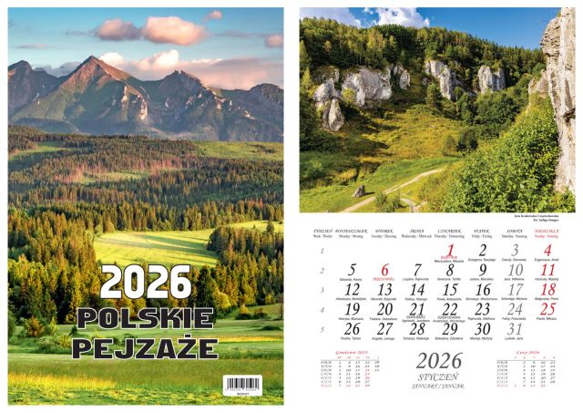 Kalendarz Jednoplanszowy BESKIDY P 5 Beskidy 2026 UWAGA: Przy zakupie kalendarzy jednoplanszowych należy zakupić również odpowiednią ilość tub wysyłkowych.... |