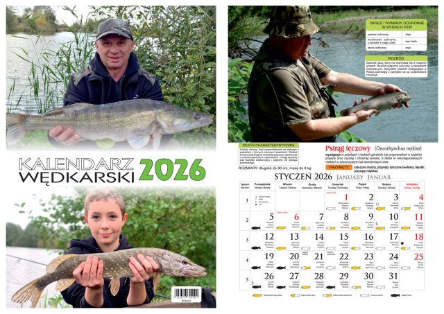 Kalendarz wieloplanszowy BESKIDY W05 13 zdjęciowy Kalendarz wędkarski 2026Kalendarze z imionami i bieżącą numeracją tygodni drukowane na papierze kredowym, 13 zdjęciowe.