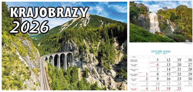 Kalendarz wieloplanszowy BESKIDY W08 13 zdjęciowy Krajobrazy Świata 2026Kalendarze z imionami i bieżącą numeracją tygodni drukowane na papierze kredowym, 13 zdjęciowe.