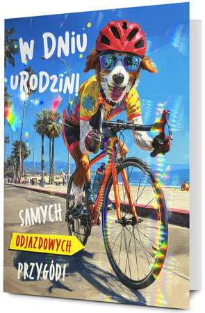 Kartka urodzinowa PAN DRAGON K.B6 HOLO-35 Pies rowerzystaKartka jest zdobiona opalizującą folią holograficzną, zawiera życzenia oraz kolorowy środek. W zestawie znajduje się koperta, kolorystycznie uzupełniająca się z kartką. Format złożonej kartki: B6 |