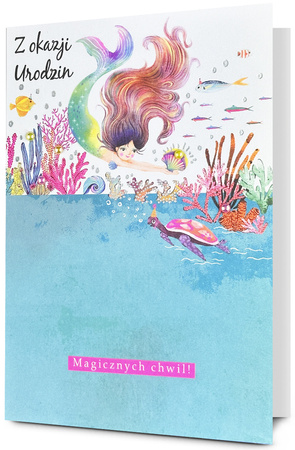 Kartka urodzinowa dla dziecka PAN DRAGON HM 200-3469 SyrenkaKartka jest bogato i różnorodnie zdobiona (zależnie od wzoru: metaliczna folia, lakier perłowy, brokat, przyklejone elementy 3D - wypukłe wstawki papierowe, elementy biżuteryjne, tłoczenia). Kartka zawiera życzenia i kolorowy środek. W zestawie znajduje... |