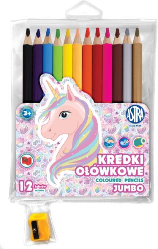 Kredki ołówkowe ASTRA jumbo okrągłe 12 kolorów + temperówka - Jednorożec• seria kredek o wyrazistych kolorach • miękkie w użyciu, łatwe w temperowaniu • nie pylą, nie kruszą się • odpowiednie również dla dzieci leworęcznych •doskonała jakość • temperówka gratis |