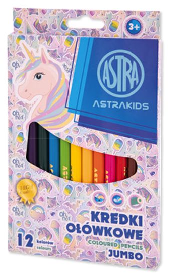 Kredki ołówkowe okrągłe JUMBO ASTRAKIDS Unicorn - 12 kolorów• seria kredek o wyrazistych kolorach • miękkie w użyciu, łatwe w temperowaniu • nie pylą, nie kruszą się • doskonała jakość • odpowiednie również dla dzieci leworęcznych • okrągły kształt • Jumbo |