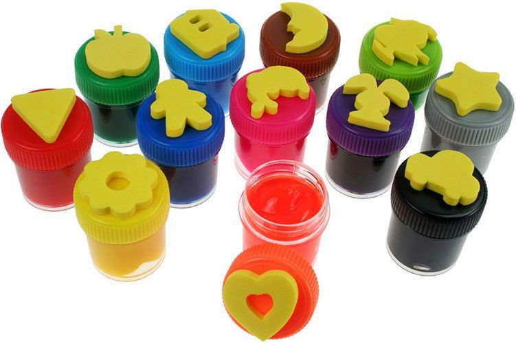 • gotowe do użycia farby do malowania palcami • nie wymagają rozcieńczania z wodą • zmywalne ze skóry i większości tkanin, nietoksyczne • tatwo rozprowadzają się na różnych powierzchniach, pozostawiając żywe i trwale kolory • można je nanosić nie tylko palcami, ale również pędzlem lub gąbką • ze śmiesznymi pieczątkami na zakrętkach pojemników lub w komplecie z pędzelkiem • idealne dla małych dzieci, np. do robienia odbitek dłoni i stóp