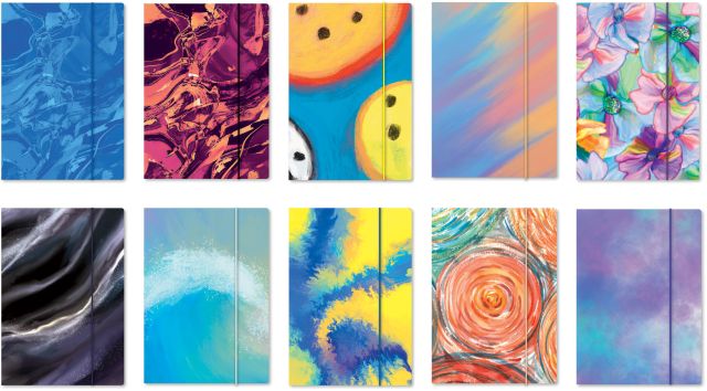 Teczka z szatą graficzną motywu malarskiego wykonana z papieru powlekanego o gramaturze 300 g/m2. Papier zadrukowany jest klasycznym kolorowym drukiem offsetowym. Zamykana na gumkę. Produkt dostępny jest w 10 różnych wzorach, na których widnieje motyw malarski.