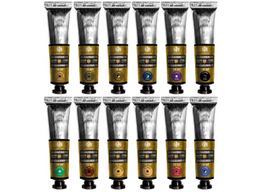 Głównymi składnikami farb olejnych artystycznych są wysokiej jakości pigmenty oraz olej schnący (olej lniany o odpowiedniej jakości). Zastosowane pigmenty mają dużą siłę barwienia i wysoką odporność na światło. Czas wysychania farb olejnych: od 2 do 30 dni w zależności od koloru.