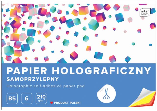 6 kartek papierów samoprzylepnych pokrytych folią holograficzną.