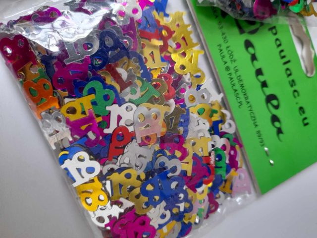 Kolorowe konfetti, idealny dodatek do imprezy urodzinowej.