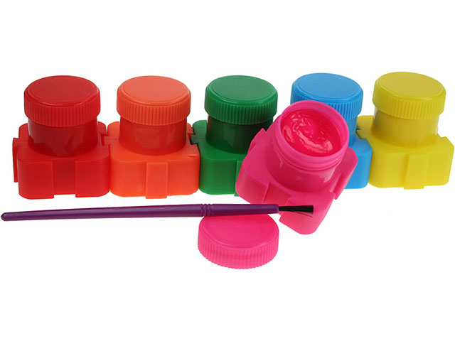 Gotowe do użycia farby do malowania palcami. Nie wymagają rozcieńczania z wodą. Zmywalne ze skóry i większości tkanin, nietoksyczne. Łatwo rozprowadzają się na różnych powierzchniach, pozostawiając żywe i trwałe kolory. Można je nanosić nie tylko palcami, ale również pędzlem lub gąbką. W komplecie z pędzelkiem. Słoiczki można ze sobą łączyć. Idealne dla małych dzieci, np.: do robienia odbitek dłoni i stóp. Komplet zawiera 6 kolorów farb, w pojemnikach o pojemności 20 ml.