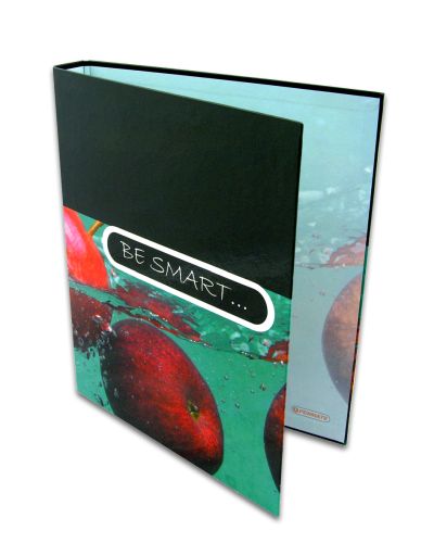 Wykonany z tektury 1,9 mm. Okleina uszlachetniona błyszcząca folią polipropylenową. Wyklejka drukowana. Mechanizm dwuringowy lub czteroringowy. Szerokość grzbietu 4 cm. Wymiary w cm: 26 x 31,5.