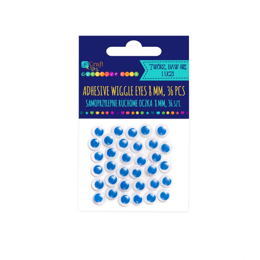 Samoprzylepne ruchome oczka DPCRAFT 8mm niebieskie, 36sztSamoprzylepne ruchome oczka DPCRAFT 8mm niebieskie, 36szt